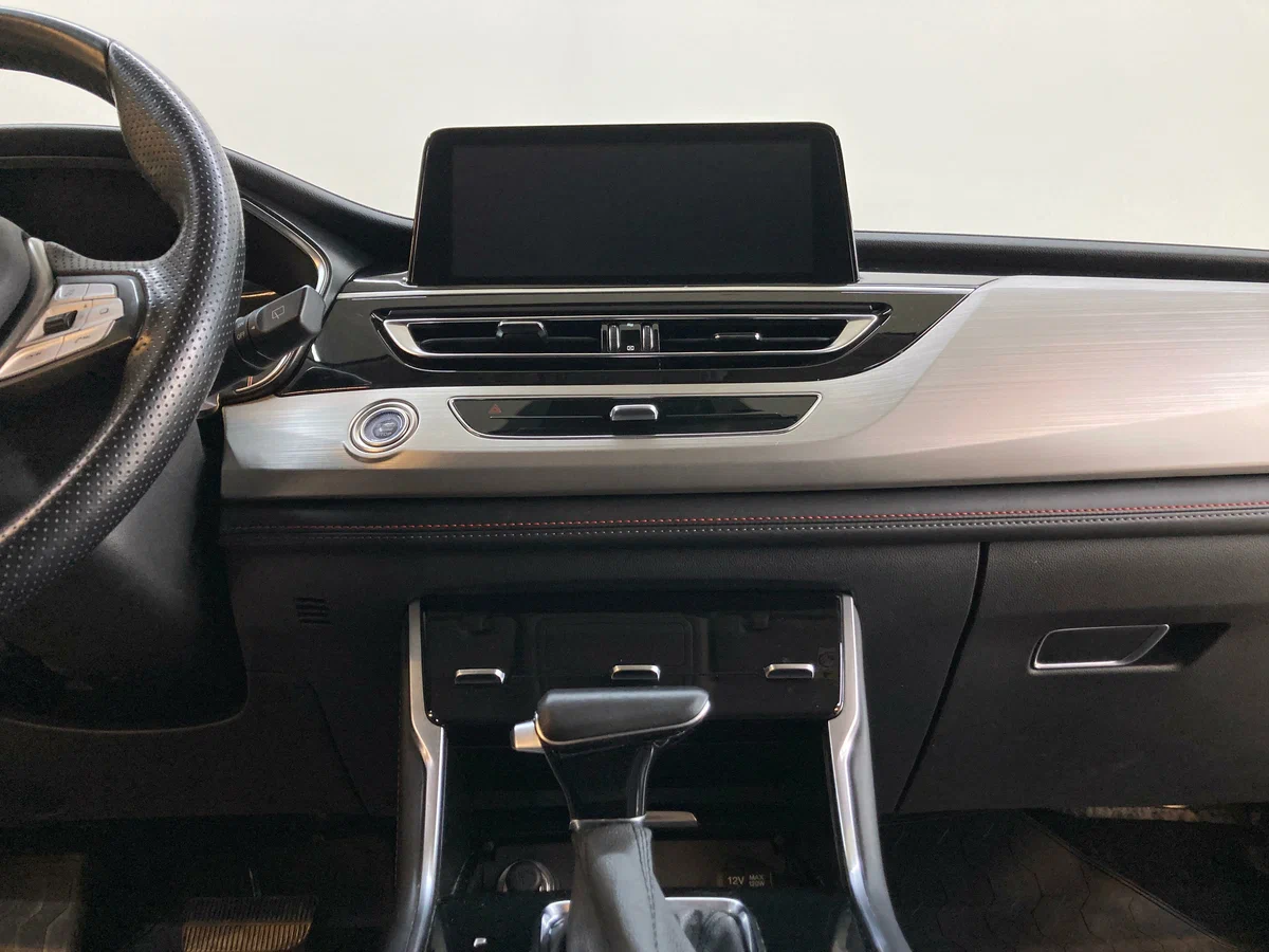 Мягкая обивка панели приборов с металлическими вставками, отделка строчкой
